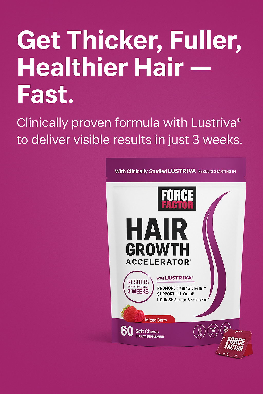 Force Factor® Hair Growth Accelerator is a revolutionary newformula designed to rapidly improve the health, strength,thickness, and growth of hair.